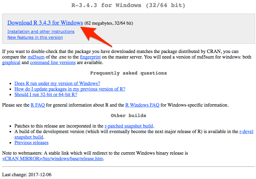 - Klicken Sie auf die neueste R-Version