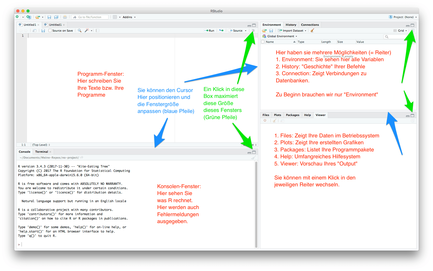 - Mehr zu Entwicklungsumgebung dann, wenn wir mit R zu arbeiten beginnen