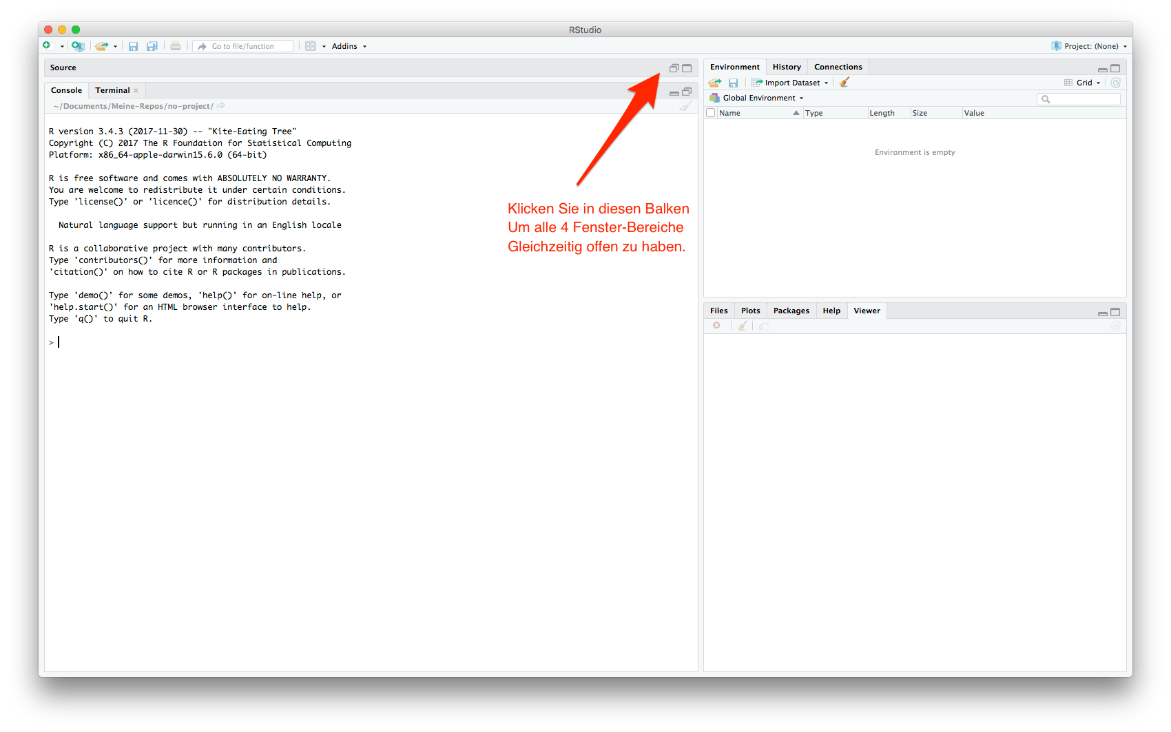 - Klicken Sie in die obere Leiste, damit Sie alle 4 Fensterbereiche sehen