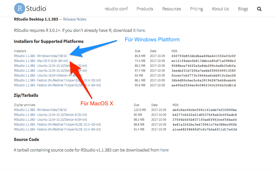 - Die aktuelle Version der Entwicklungsumgebung RStudio
